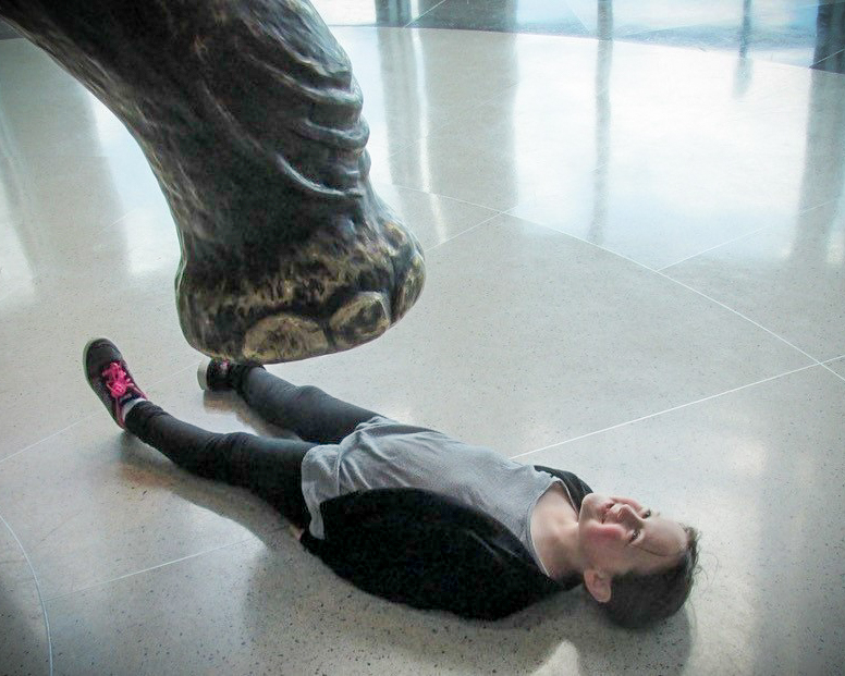 The mammoth has its right forefoot raised. Kids love sliding under it and having their picture taken. As we released two of the cranes, the mammoth stood for a few seconds then toppled toward the raised front foot! The crane held it by the collar around its neck. Good thing no one was under the foot!